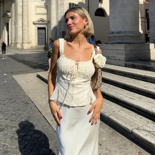 Cotton & Linen Printed Ruffle Crop Blouse & Skirt Set Coords