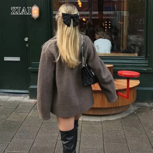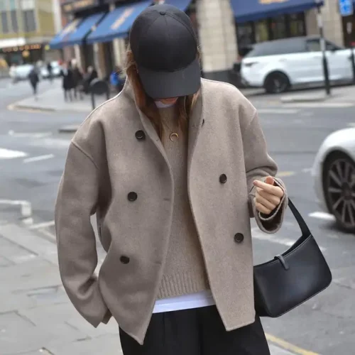 Quick ViewChic Winter Double Breasted Solid Lapel Short Blazer Wool Jacket Warm Outerwear