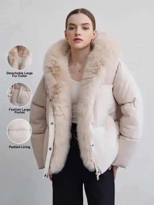 Quick ViewWarm Padded & Quilted Puffer Hooded Winter Jacket With Detachable Fur Collar