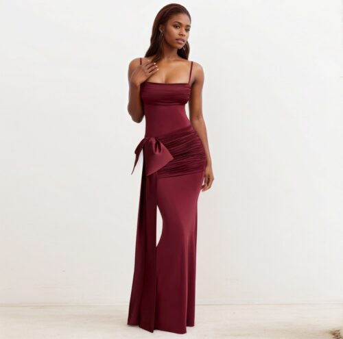 Quick ViewBodycon Maxi Wrap Dress with Bow – Maroon