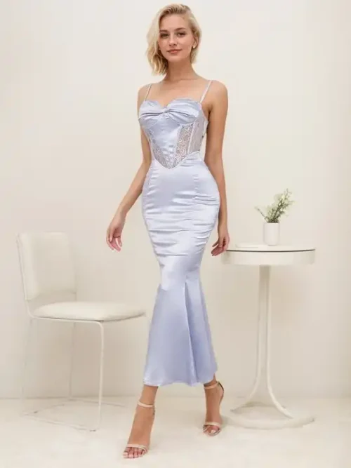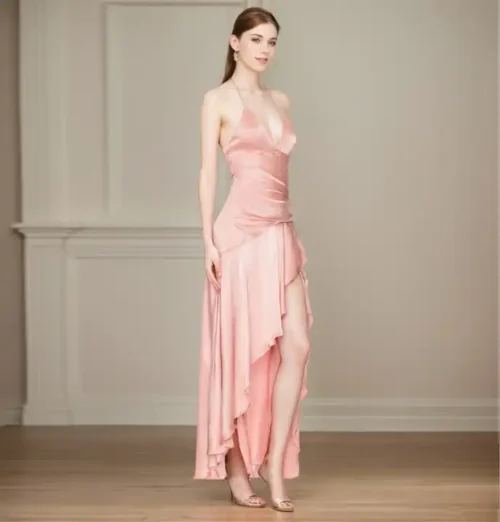 Quick ViewSatin Silk Corset Side Slit Blush Dress