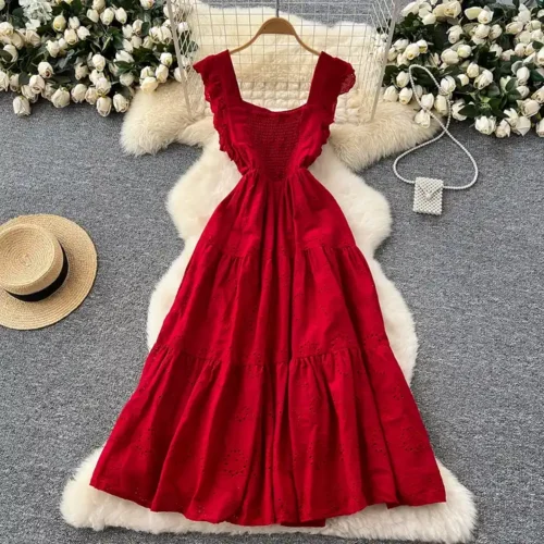 Quick ViewBreezy French Vintage Square Neck Waisted Hollow Embroidered Summer Dress