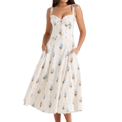 Quick ViewFloral Lace up Shoulder Strap Casual Summer Midi Dress in Cotton
