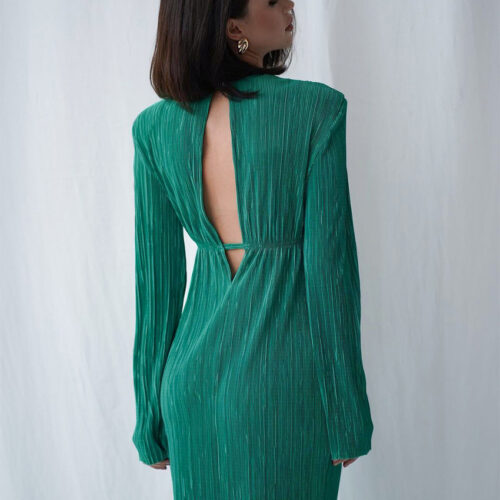 Quick ViewPleated Trendy Long Sleeve Slit Back Charm Dress
