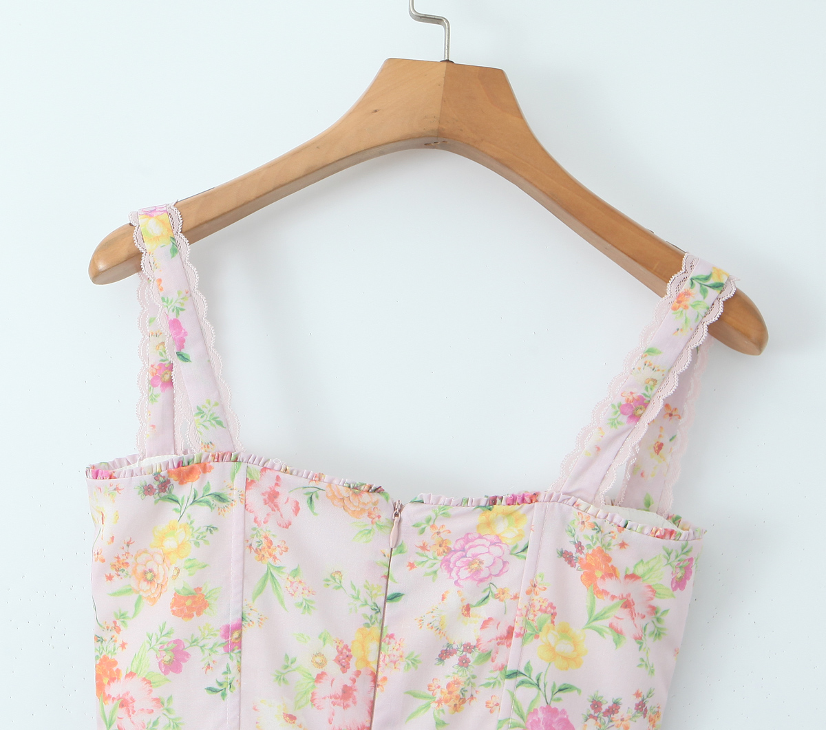 Floral Lace A-LINE Midi CB Vestidos Halter-Neck Straps Backless French Casual Printed Dress