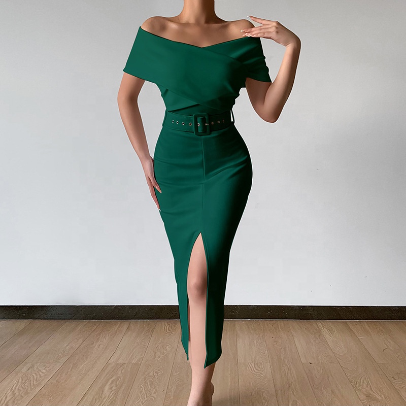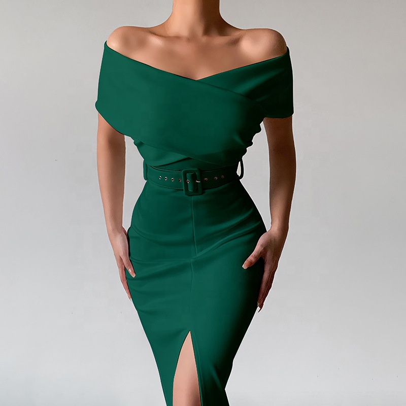 Pretty Off-shoulder Bodycon Work or Party Evening Belted Dress