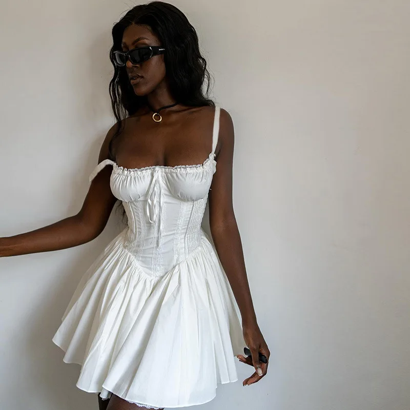 Neckline: Soft straight/sweetheart bust with center drawstring tie