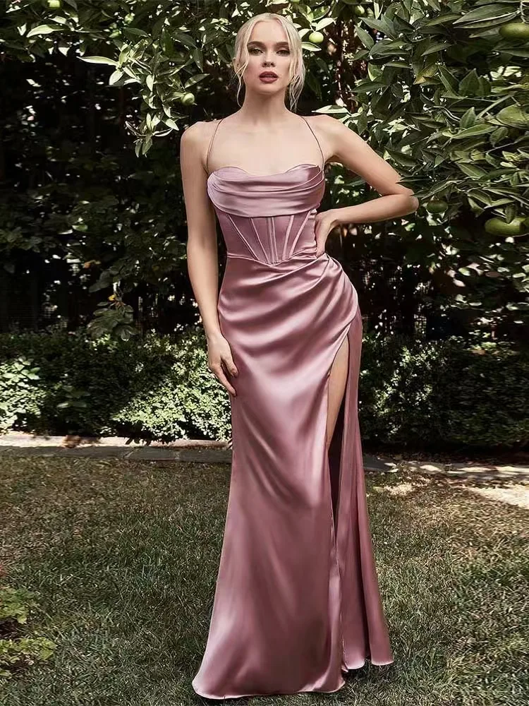 Be the first to review “Satin Silk Corset Side Slit Blush Dress”