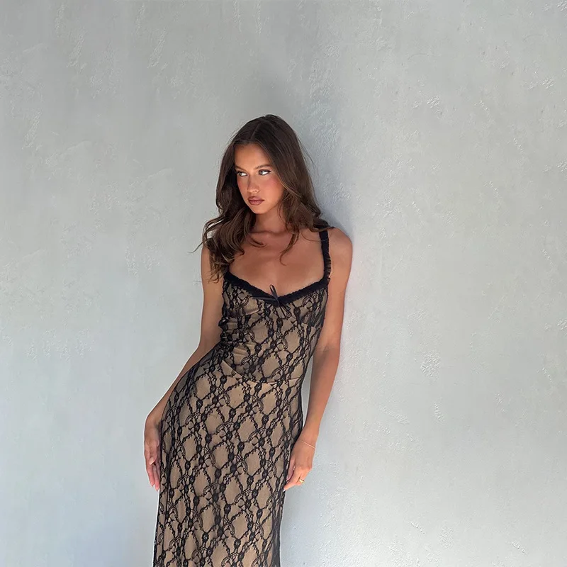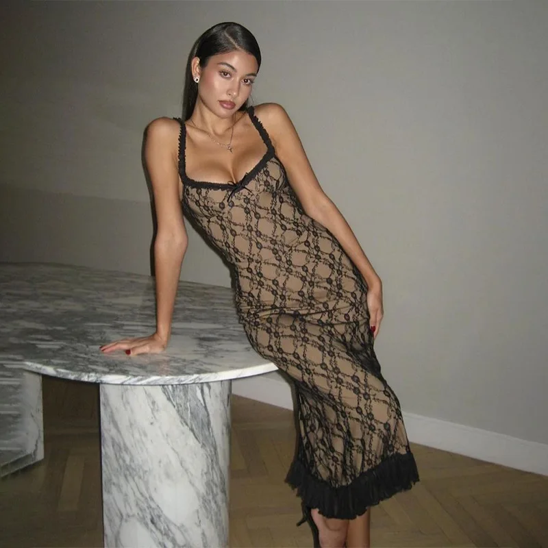 Details: Allover lattice lace pattern with delicate ruffle hem
