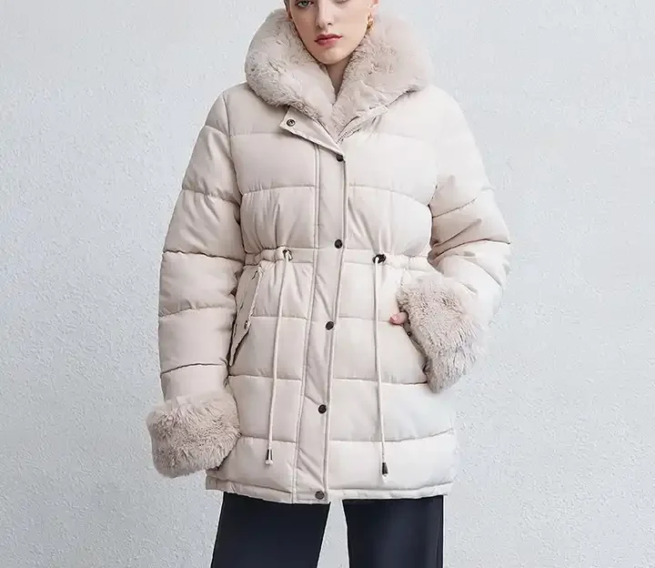 Trendy Shiny Look Padded Puffer Jacket Black Short Women Quilted Coat Puffer Coat with Thick Fir Collar