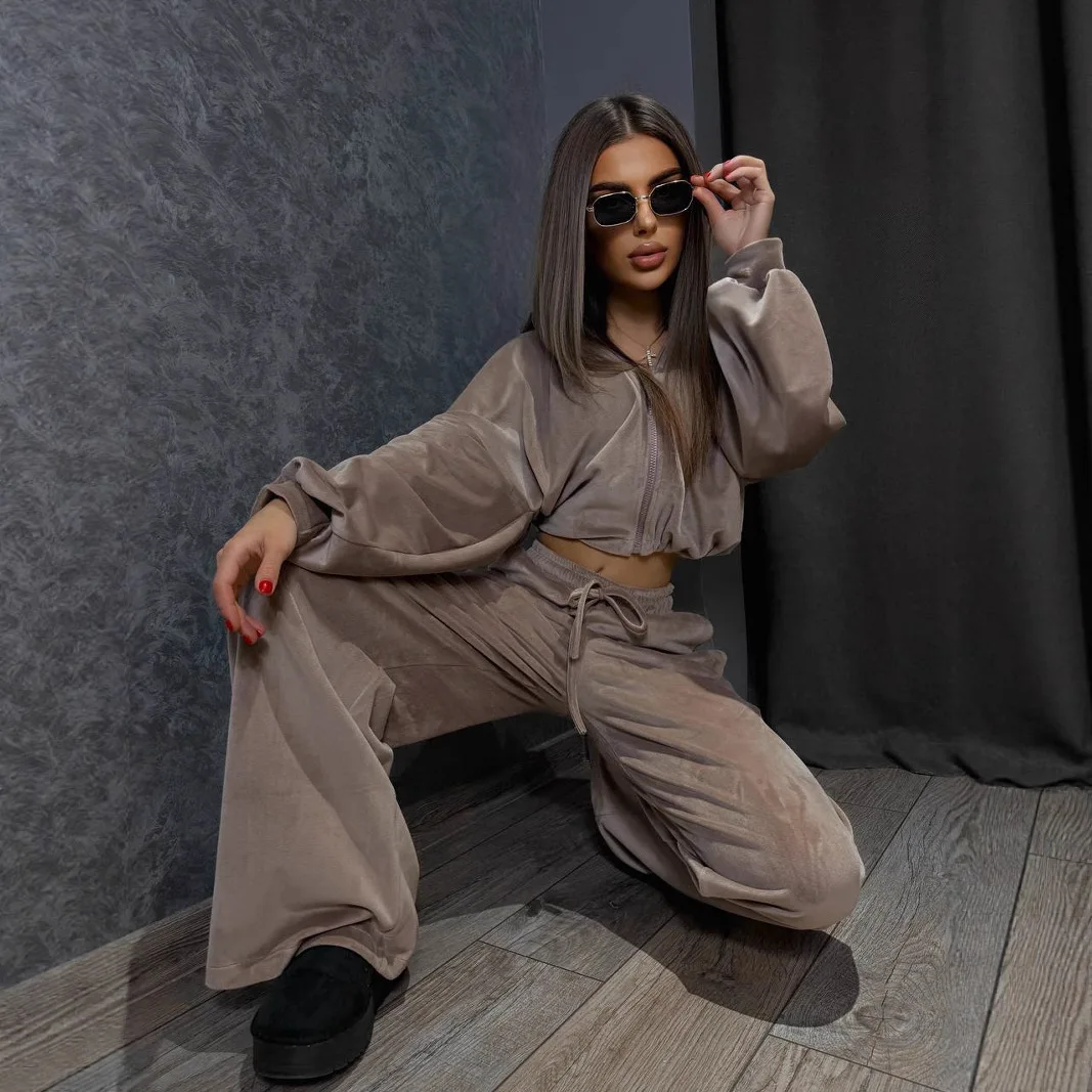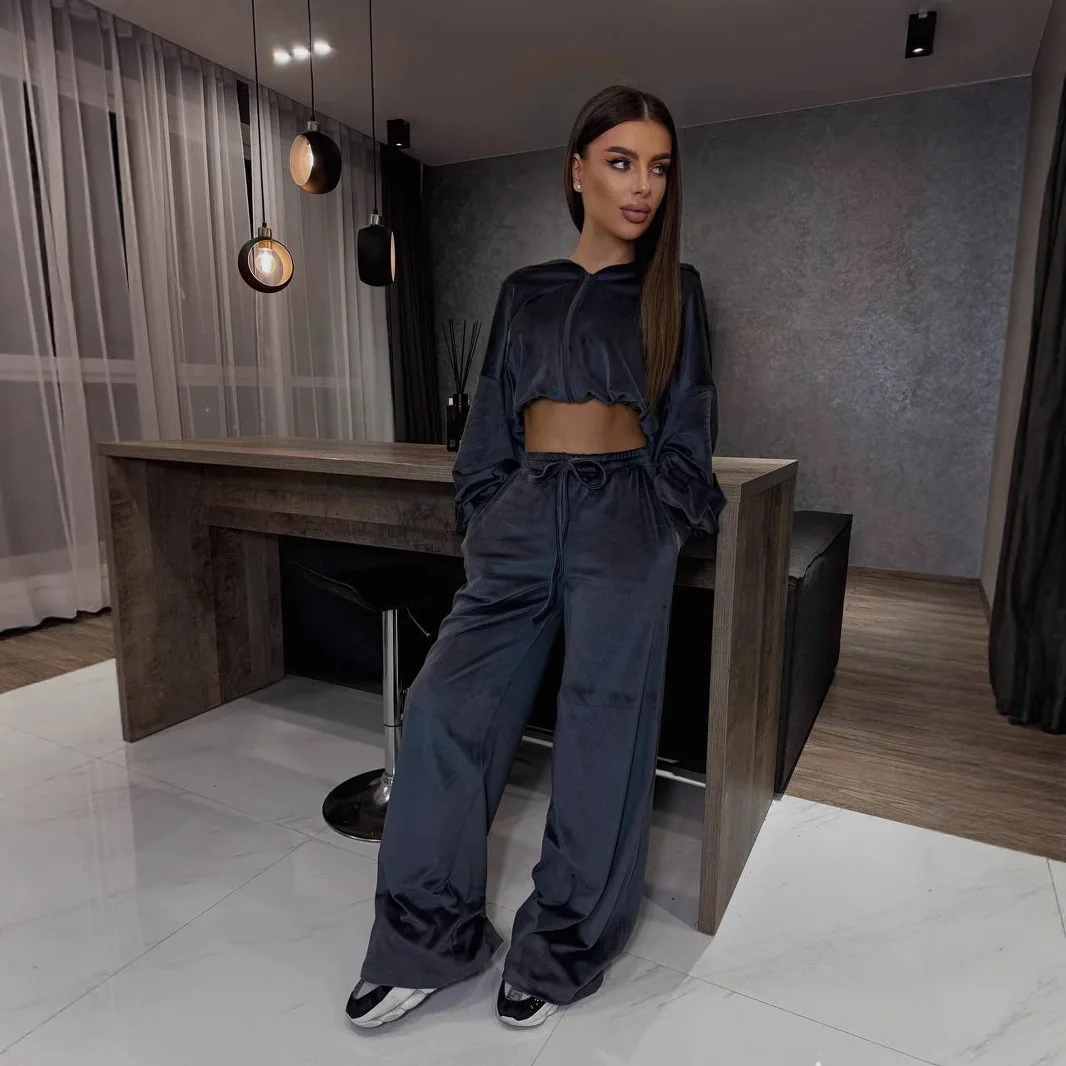 Set: 2-piece (cropped hoodie + wide-leg pants)