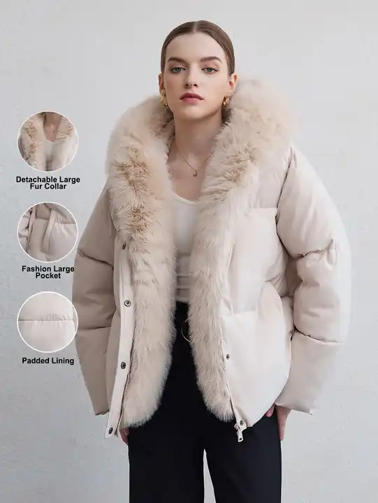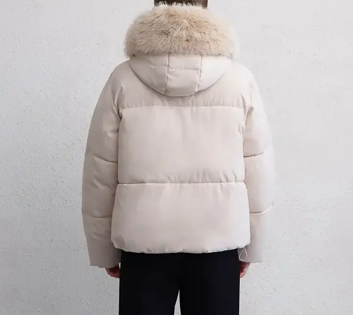 Warm Padded & Quilted Puffer Hooded Winter Jacket With Detachable Fur Collar