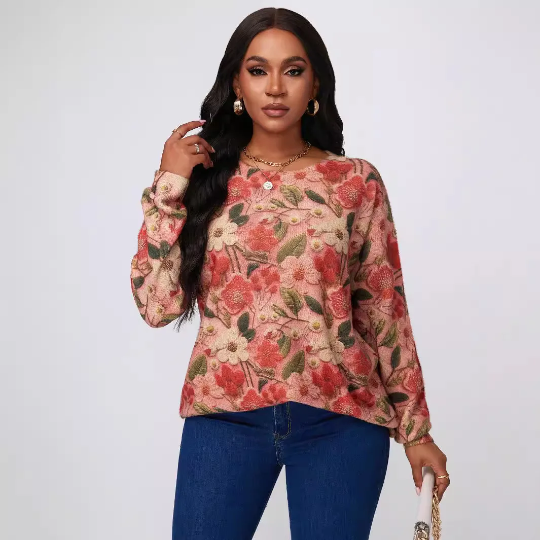 Beaded Flowers Embroidered Puff Sleeve Sweater